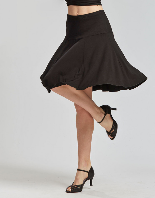 Die Form ist eng an der Hüfte für eine gute Passform. Der untere Teil erweitert sich und hebt die Bewegungen der lateinamerikanischen Tänze hervor.